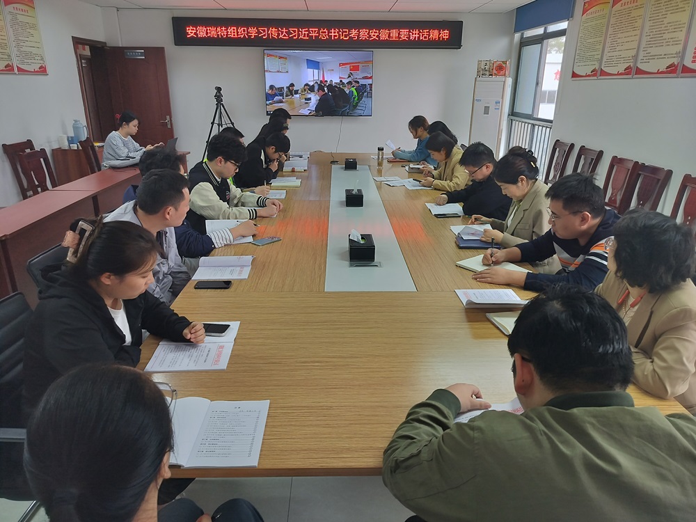 安徽瑞特組織傳達學習習近平總書記考察安徽重要講話精神,全體黨員、各部門負責人及青年骨干參加。會議強調(diào),全體員工要深入學習領會講話精神要義,把學習宣傳貫徹習近平總書記考察安徽重要講話精神作為當前和今后一個時期的首要政治任務。一是認真開展學習研討,做到學深悟透、知行合一;二是抓好宣傳宣講,營造濃厚氛圍;三是結(jié)合公司實際,推動貫徹落實。