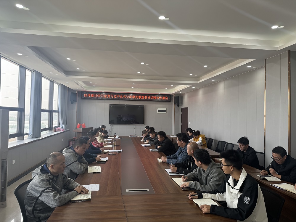 蚌埠建材組織召開學習傳達習近平總書記考察安徽重要講話精神專題會,公司領導班子、中層副職及以上管理人員、部分黨員和青年團員代表參加會議。會議要求,各中心、各站點要以學習習近平總書記在安徽考察時的重要講話精神為契機,將習近平總書記的講話精神轉(zhuǎn)化為實干擔當?shù)膹姶髣恿?,堅持目標不變、任務不減,迎難而上,奮發(fā)奮進,為完成全年目標任務而努力奮斗。