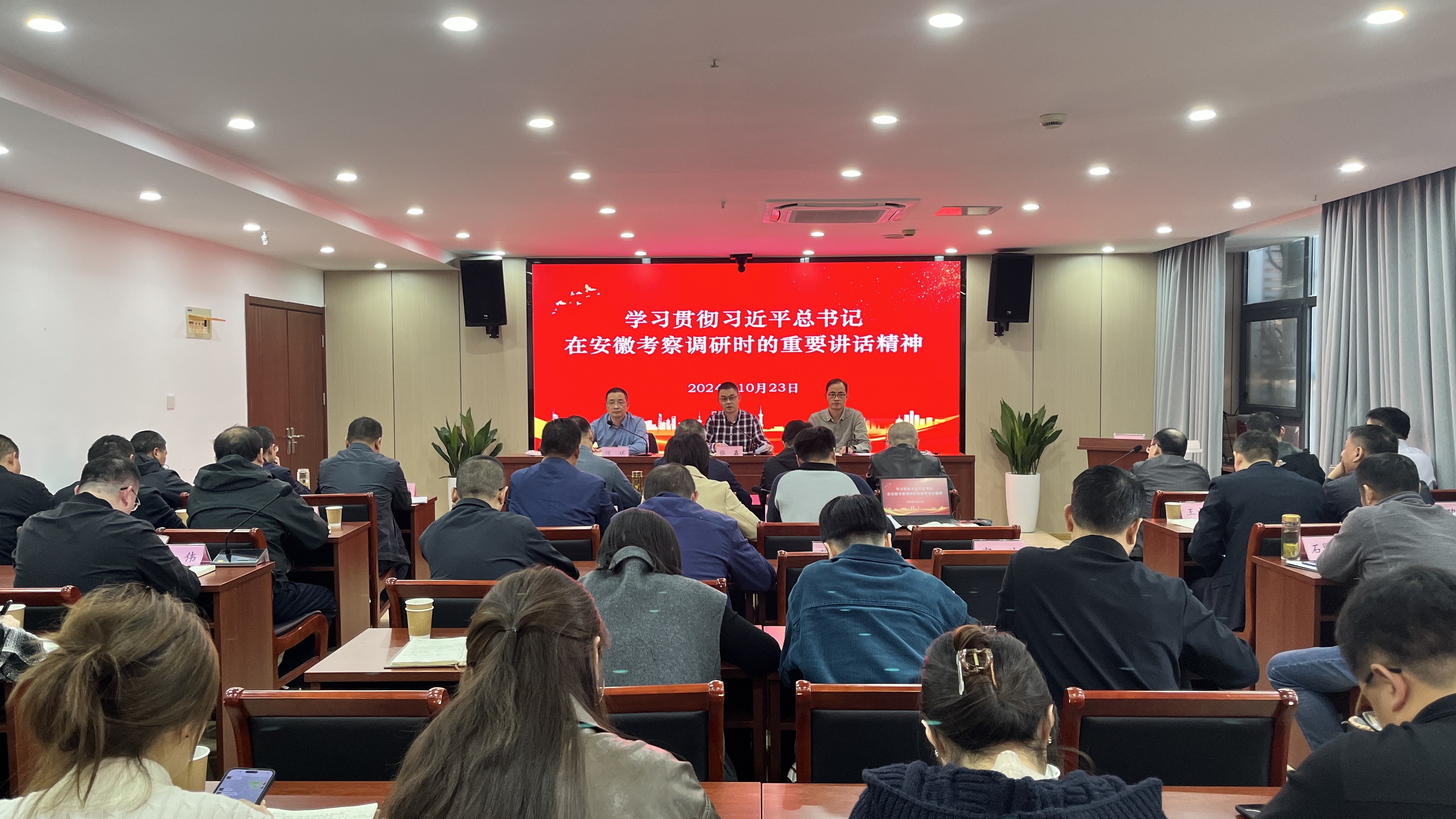 會議指出,學(xué)習(xí)宣貫習(xí)近平總書記考察安徽重要講話精神是當(dāng)前和今后一個(gè)時(shí)期的重大政治任務(wù)。公司上下要迅速掀起學(xué)習(xí)宣傳貫徹?zé)岢?,各單位要提高政治站位,深化思想認(rèn)識,切實(shí)增強(qiáng)貫徹落實(shí)習(xí)近平總書記考察安徽重要講話精神的政治自覺、思想自覺和行動(dòng)自覺。要通過工作會、周例會、“三會一課”和主題黨日等多種形式,深刻把握總書記講話的豐富內(nèi)涵和精神實(shí)質(zhì),堅(jiān)決扛起深化國資國企改革的重大責(zé)任,推動(dòng)中央、省委、省國資委及集團(tuán)黨委重大部署在公司落地見效,以實(shí)際行動(dòng)衷心擁護(hù)“兩個(gè)確立”,忠誠踐行“兩個(gè)維護(hù)”。