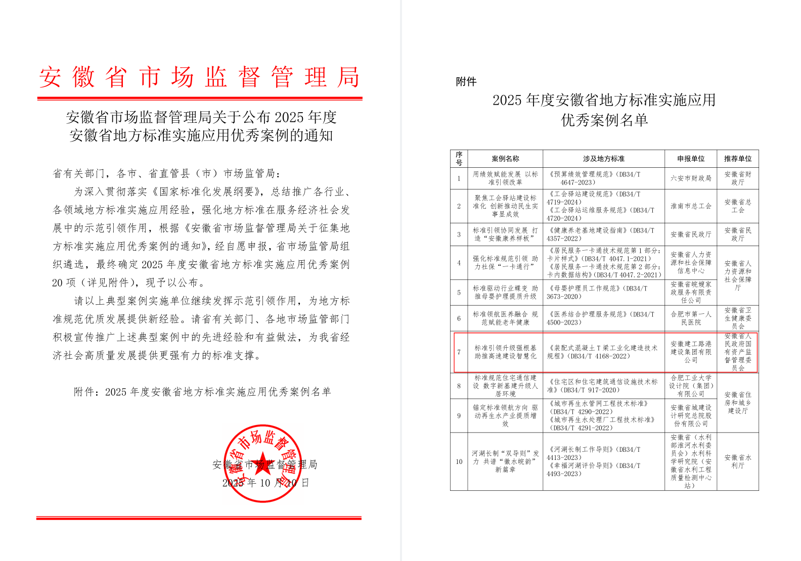 近日,安徽省市場(chǎng)監(jiān)督管理局公布了2025年度安徽省地方標(biāo)準(zhǔn)實(shí)施應(yīng)用優(yōu)秀案例名單,建工路港申報(bào)的“標(biāo)準(zhǔn)引領(lǐng)升級(jí)強(qiáng)根基 助推高速建設(shè)智慧化”案例成功入選,主導(dǎo)制定的《裝配式混凝土T梁工業(yè)化建造技術(shù)規(guī)程》也憑借工業(yè)化轉(zhuǎn)型創(chuàng)新實(shí)踐與顯著成效,為交通基礎(chǔ)設(shè)施工業(yè)化、智能化發(fā)展提供了可推廣的實(shí)踐路徑。