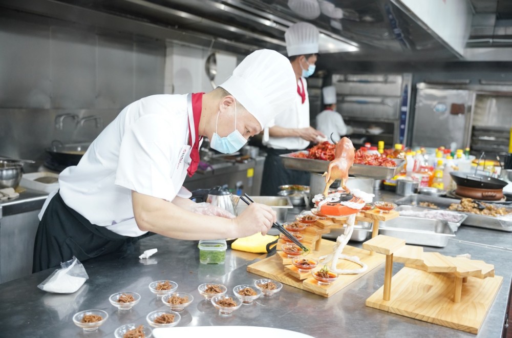 本次大賽以“廚間展絕技 匠心筑‘味’來”為主題,采用“酒店組+團餐組”雙賽道模式,涵蓋了中式烹調(diào)、傳統(tǒng)面點、創(chuàng)意融合等多個項目,從食材選擇、刀工處理、火候掌控到菜品造型、口味創(chuàng)新,全方位考驗著廚師們的專業(yè)素養(yǎng)和創(chuàng)新能力,實現(xiàn)“以賽促學、以賽促練”的最終目的。
