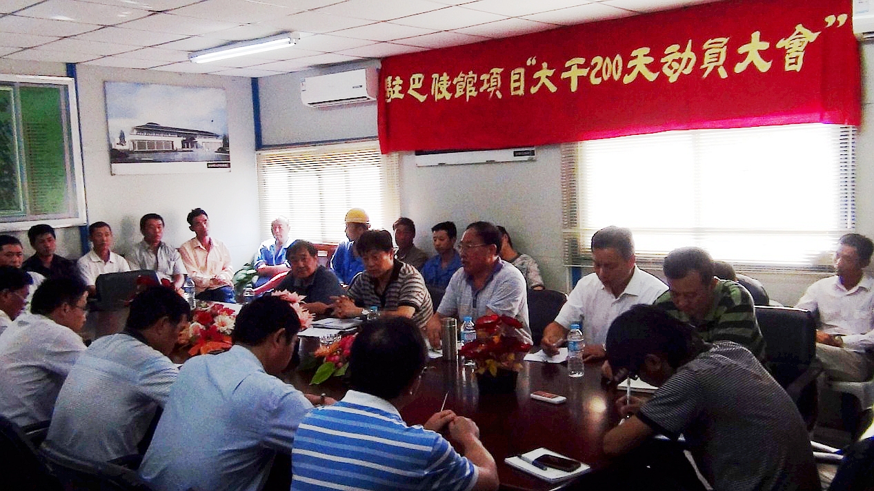 經(jīng)過一周時(shí)間的調(diào)研和籌備,21日上午,項(xiàng)目部組織召開“駐巴使館項(xiàng)目大干200天動員大會”。許總參會并代表集團(tuán)公司董事長趙時(shí)運(yùn)親切慰問項(xiàng)目全體職工,他要求項(xiàng)目從現(xiàn)在起全面進(jìn)入搶工階段,要確保按合同工期履約;強(qiáng)調(diào)參會人員要把會議精神傳達(dá)到一線,全體職工要堅(jiān)決執(zhí)行動員大會的要求;同時(shí)將會從集團(tuán)的層面給予項(xiàng)目支持。從項(xiàng)目管理干部、一線職工到國內(nèi)后勤保障組,大家都紛紛表態(tài),一定團(tuán)結(jié)一致掀起大干、快干的新高潮。