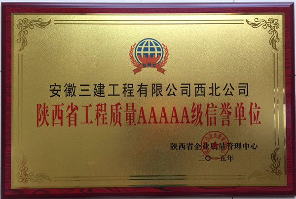 安徽三建西北公司榮膺“陜西省工程質(zhì)量AAAAA級(jí)信譽(yù)單位”