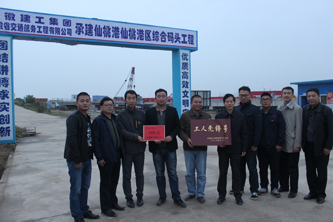 2016年11月8日,集團(tuán)公司工會(huì)主席徐曉光、二建公司工會(huì)主席李林、路港公司工會(huì)副主席殷陽明一行在交航公司工會(huì)主席李楊的陪同下,蒞臨安徽交航仙桃港項(xiàng)目開展“工人先鋒號(hào)”驗(yàn)收工作。