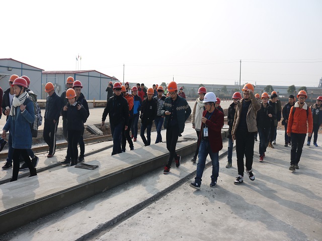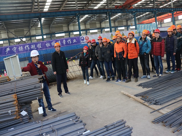 來訪師生在會議室聽取了項目副經理徐海東對項目總體概況、文明施工、標準化建設等項目管理中經驗及亮點的介紹后,參觀了鋼筋加工場、實驗室、預制場、料場以及官埠河大橋樁基和土方施工現場,全面了解了工程特點、施工進展情況,徐經理對同學們提出的問題一一做了解答,使同學們更深入地了解了施工工法及施工安全質量控制要點等。