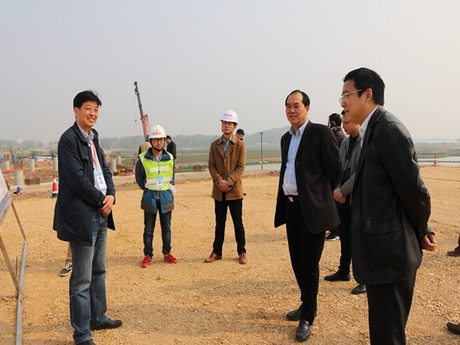 在G347六標官埠河大橋的施工現(xiàn)場,程躍輝聽取了項目負責(zé)人關(guān)于工程建設(shè)情況的匯報,充分肯定了項目建設(shè)取得的成績。他要求:一是要加強項目建設(shè)管理,對進場的施工人員和設(shè)備進行嚴格檢查;二是要加強項目規(guī)范化建設(shè),不僅在施工和工藝方面做到標準化,同時管理也要做到標準化。程躍輝強調(diào),G347項目建設(shè)投資大,線路長,省交通運輸廳高度重視,市交通、公路部門以及項目部都要加大工程建設(shè)管理力度,將G347建設(shè)成一條精品路。