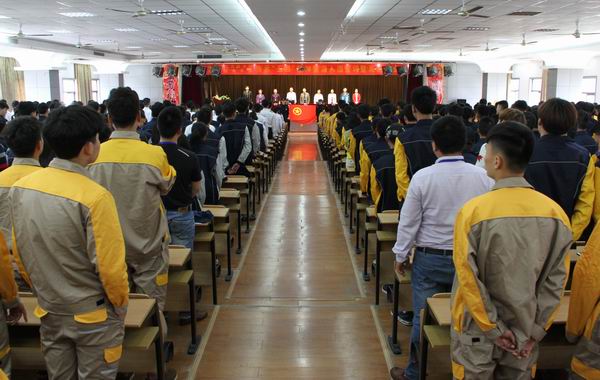 “我們是五月的花海,用青春擁抱時代;我們是初升的太陽,用生命點燃未來……”伴隨著莊嚴的旋律,千人齊聲高唱中國共青團團歌——《光榮啊,中國共青團》,活動拉開了帷幕。隨后,在16建筑施工班魏韜同學的帶領(lǐng)下,參加活動的所有領(lǐng)導和同學們面對鮮紅的團旗,高舉右拳,重溫了入團誓詞,再次接受了一次思想洗禮。15機電一體化班的張為民同學代表全院共青團員做了團旗下的講話,并在活動現(xiàn)場,對在三月份學雷鋒活動中表現(xiàn)突出的先進集體和先進個人進行了表彰。