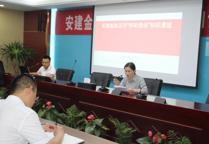 為進(jìn)一步提升公司員工綜合素質(zhì),打造學(xué)習(xí)型企業(yè),安建金融首堂“你聽我說”知識(shí)課堂于5月22日下午首次開講。此次知識(shí)課堂由公司黨群工作部舉辦,安建金融全體員工參加學(xué)習(xí)。