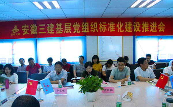 觀摩結(jié)束后,現(xiàn)場召開黨組織標(biāo)化建設(shè)推進(jìn)會(huì)。會(huì)上,三建公司黨工部針對(duì)《安徽三建工程有限公司基層黨組織標(biāo)準(zhǔn)化建設(shè)一本通》和《安徽三建工程有限公司基層黨組織標(biāo)準(zhǔn)化建設(shè)指導(dǎo)手冊》等有關(guān)內(nèi)容圍繞組織體系設(shè)置、班子隊(duì)伍建設(shè)、黨員教育管理、黨內(nèi)組織生活、發(fā)揮作用途徑、活動(dòng)場所建設(shè)、黨內(nèi)運(yùn)行機(jī)制及基本工作保障等八個(gè)方面進(jìn)行了逐條解讀并就有關(guān)問題進(jìn)行了解答;一公司海南分公司通過視頻短片的形式展現(xiàn)了其開展的“激揚(yáng)青春、放飛夢想”演講比賽、先進(jìn)事跡報(bào)告會(huì)、革命傳統(tǒng)教育等系列“紅五月”活動(dòng)的成果;八公司臨泉聯(lián)合黨支部圍繞八個(gè)方面標(biāo)準(zhǔn)化建設(shè)以題為《構(gòu)建基層標(biāo)準(zhǔn)化黨組織 強(qiáng)化基層黨建服務(wù)力量》通過PPT的形式,形象直觀地介紹了在黨組織標(biāo)準(zhǔn)化建設(shè)和項(xiàng)目黨建服務(wù)品牌創(chuàng)建中的經(jīng)驗(yàn)做法。