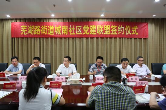 5月26日,合肥蕪湖路街道城南社區(qū)黨建聯(lián)盟正式成立。安徽三建、省建行、省糧食局、省直公積金管理中心、安建建材及安醫(yī)大四附院和市政設(shè)施信息中心等7家單位與城南社區(qū)簽訂“城南社區(qū)黨建聯(lián)盟協(xié)議書”,以共同促進(jìn)黨建工作開展。