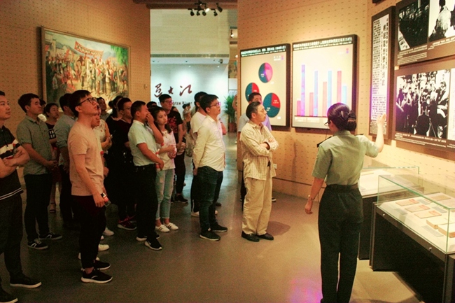 渡江戰(zhàn)役紀念館以實物、圖片、文字和影像等資料,生動展現(xiàn)了“百萬雄師過大江”這段驚天動地的革命歷史事件。團員青年們認真聆聽講解員講解渡江戰(zhàn)役的全過程,懷著崇敬的心情瞻仰了一件件珍貴的革命文物,在一位位革命先烈們的姓名前駐足凝望,更加深刻的感受到是先烈們用青春與熱血繪制了新中國的宏偉篇章,我們的幸福生活來之不易。