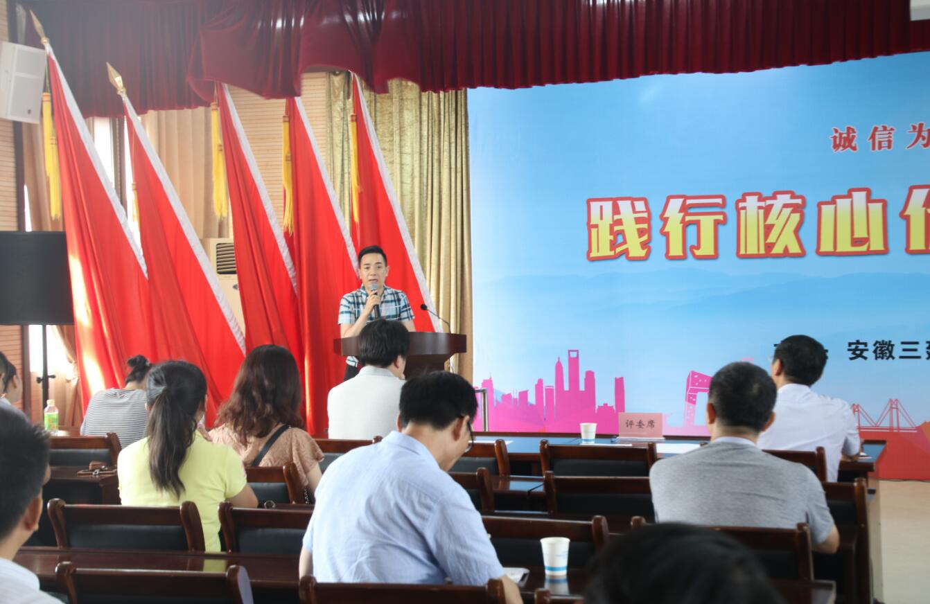 6月23日,省國資委群工處副處長、團(tuán)工委副書記費(fèi)智鋼向安徽三建團(tuán)委授予“全國五四紅旗團(tuán)委”榮譽(yù)獎牌。同時(shí)該司舉辦了“誠信為本 敬業(yè)至上 踐行集團(tuán)核心價(jià)值觀”主題演講比賽。集團(tuán)公司黨委工作部副主任、團(tuán)委書記、黨委秘書王詩旵應(yīng)邀出席本次比賽。