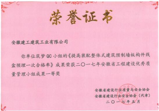 近日,從四川省成都市舉辦的2017年全國工程建設優(yōu)秀質(zhì)量管理小組活動成果交流會上傳來喜訊,我公司申報的《提高裝配整體建筑預制墻板線盒預埋一次合格率》成果,在與來自北京、上海、廣東等30個地區(qū)和中建、中交、解放軍、航天、核工業(yè)等16個行業(yè)(總公司)推報的1393個優(yōu)秀成果同場競爭中,經(jīng)過嚴格的資料審核、現(xiàn)場發(fā)表、評委專家打分等環(huán)節(jié),成功晉級并榮獲《二〇一七年度全國工程建設質(zhì)量管理小組活動優(yōu)秀成果一等獎》。