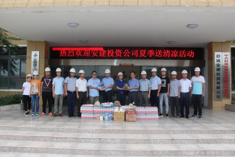 慰問(wèn)組一行首先深入到施工現(xiàn)場(chǎng),向奮戰(zhàn)在一線的工人致以親切的問(wèn)候。隨后,慰問(wèn)組為項(xiàng)目公司職工送去綠豆、礦泉水、洗漱用品等防暑降溫物品。慰問(wèn)組領(lǐng)導(dǎo)對(duì)舒城安建投資有限公司全體員工的辛勤工作表示感謝,要求項(xiàng)目公司高度重視員工權(quán)益保障,加強(qiáng)安全防范,認(rèn)真做好防暑降溫工作,切實(shí)保障職工的生命安全和身體健康。