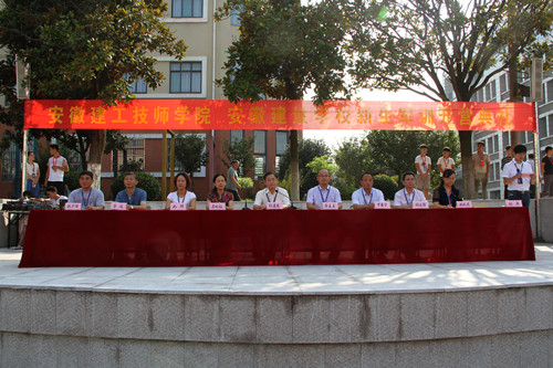 8月21日上午,安徽建工技師學院2017級新生軍訓開營典禮在田徑運動場隆重舉行, 為期18天的軍訓正式拉開帷幕。學院副院長任建設、呂良玉出席,德育工作部、安全保衛(wèi)處、黨委工作部、團委部門負責人及三系黨支部書記、新生班主任、2017級第一批報到新生參加了典禮,團委書記、德育工作部副主任陳卓主持儀式。
