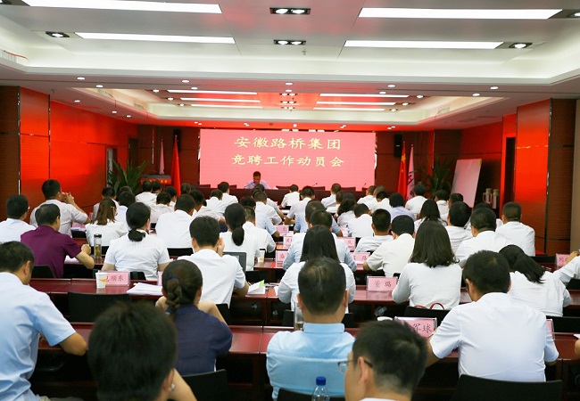 8月26日下午,安徽路橋集團在安建大廈八樓第一會議室組織召開競聘上崗工作動員會。公司黨委書記、董事長、總經(jīng)理盛明宏出席會議并做重要講話,紀委書記、工會主席王勝利主持會議并做動員講話。公司職工代表、機關(guān)各部門主管及以上員工、攀成德咨詢公司有關(guān)人員等70余人參加了會議。