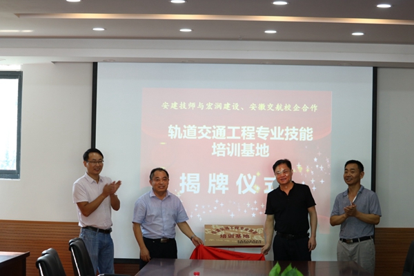 2017年8月27日下午,在合肥市軌道交通4號(hào)線TJ03標(biāo)項(xiàng)目部二號(hào)會(huì)議室隆重舉行安徽建工技師學(xué)院軌道交通工程專業(yè)技能培訓(xùn)基地成立暨揭牌儀式。會(huì)議由安徽省交通航務(wù)工程有限公司副總經(jīng)理侯力主持,安徽建工技師學(xué)院黨委委員、副院長(zhǎng)任建設(shè),安徽省交通航務(wù)工程有限公司副總經(jīng)理汪崇龍、宏潤(rùn)建設(shè)集團(tuán)股份有限公司常務(wù)副經(jīng)理翁厚洋出席簽約和揭牌儀式。