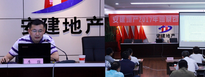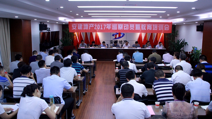 8月29日,安建地產2017年巡察動員暨教育培訓會在安建大廈21樓第三會議室召開。集團黨委委員、副總經理、安建地產黨委書記、董事長霍向東出席會議并作動員講話。安建地產黨委委員、紀委書記陳小群布置《安建地產2017年巡察工作實施方案》。公司領導班子成員、各項目公司領導班子成員、財務負責人、機關相關崗位員工、巡察組成員共70余人參加會議。集團總經理助理、安建地產黨委副書記、總經理楊斌主持會議。
