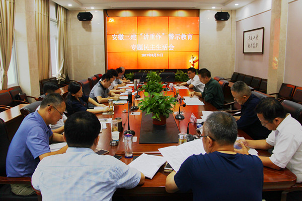 在集團(tuán)公司黨委的指導(dǎo)下,公司班子高度重視這次民主生活會,會前對2017年“兩學(xué)一做”專題教育整改任務(wù)清單完成情況進(jìn)行督查梳理,研究制定了《安徽三建公司在“講政治、重規(guī)矩、作表率”專題警示教育中召開專題民主生活會實(shí)施方案》,通過召開群眾座談會、CES發(fā)放《征求意見函》、調(diào)研等多種渠道,廣泛征求基層黨組織和員工的意見,認(rèn)真開展談心談話活動(dòng),撰寫班子對照檢查材料,班子成員認(rèn)真準(zhǔn)備發(fā)言提綱,這些工作為開好民主生活會奠定了堅(jiān)實(shí)基礎(chǔ)。