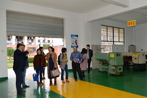 院領(lǐng)導(dǎo)陪同寧波客人參觀學(xué)院實(shí)訓(xùn)車間