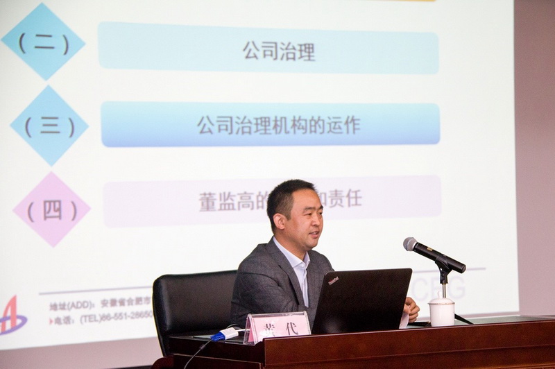 公司黨總支委員、紀檢委員、副總經理朱友良為新員工授課