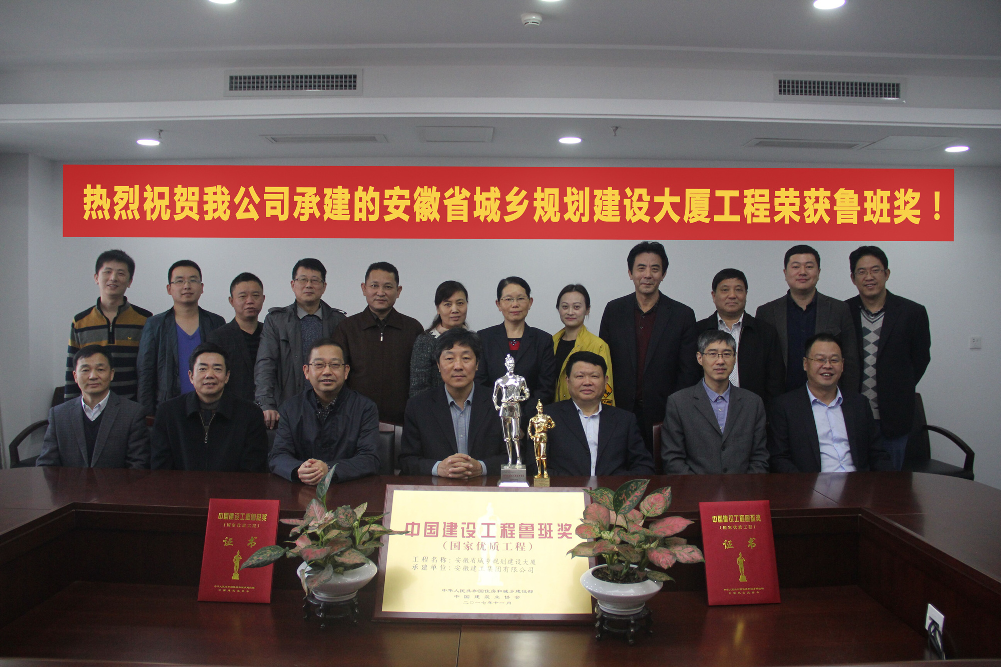 11月6日,中國(guó)建筑業(yè)在北京釣魚臺(tái)國(guó)賓館召開會(huì)議,隆重發(fā)布“2016~2017年度中國(guó)建設(shè)工程魯班獎(jiǎng)(國(guó)家優(yōu)質(zhì)工程)暨召開紀(jì)念魯班獎(jiǎng)創(chuàng)立30周年大會(huì)”。我公司承建的安徽省城鄉(xiāng)規(guī)劃建設(shè)大廈工程喜獲“魯班獎(jiǎng)”,集團(tuán)公司榮獲“創(chuàng)建魯班獎(jiǎng)優(yōu)秀企業(yè)”,企業(yè)創(chuàng)優(yōu)工作實(shí)現(xiàn)了新的歷史突破!11月8日,合肥市城鄉(xiāng)建設(shè)委員會(huì)發(fā)來賀信,熱烈祝賀我公司承建的安徽省城鄉(xiāng)規(guī)劃建設(shè)大廈工程入選2016-2017年度中國(guó)建設(shè)工程魯班獎(jiǎng)(國(guó)家優(yōu)質(zhì)工程)。
