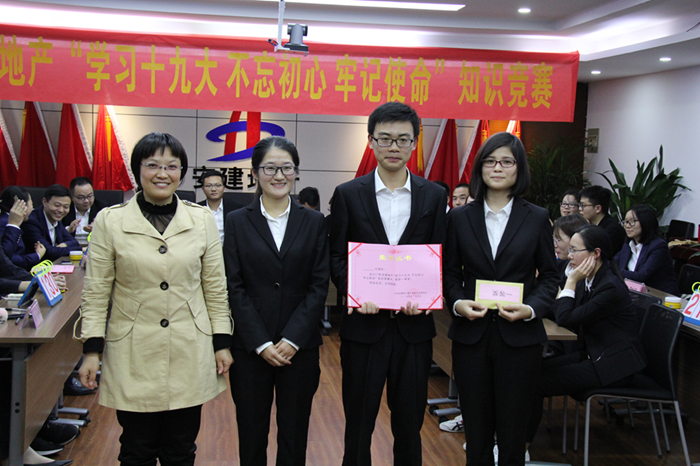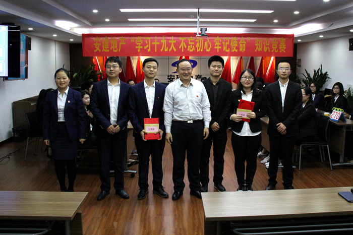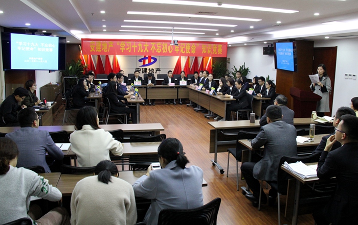 11月8日,安建地產(chǎn)在安建國際大廈21樓會議室組織開展“學(xué)習(xí)十九大 不忘初心 牢記使命”知識競賽。安建地產(chǎn)所屬各單位共10支隊伍30名選手參加比賽。公司領(lǐng)導(dǎo)班子成員出席并為獲勝隊伍頒獎。