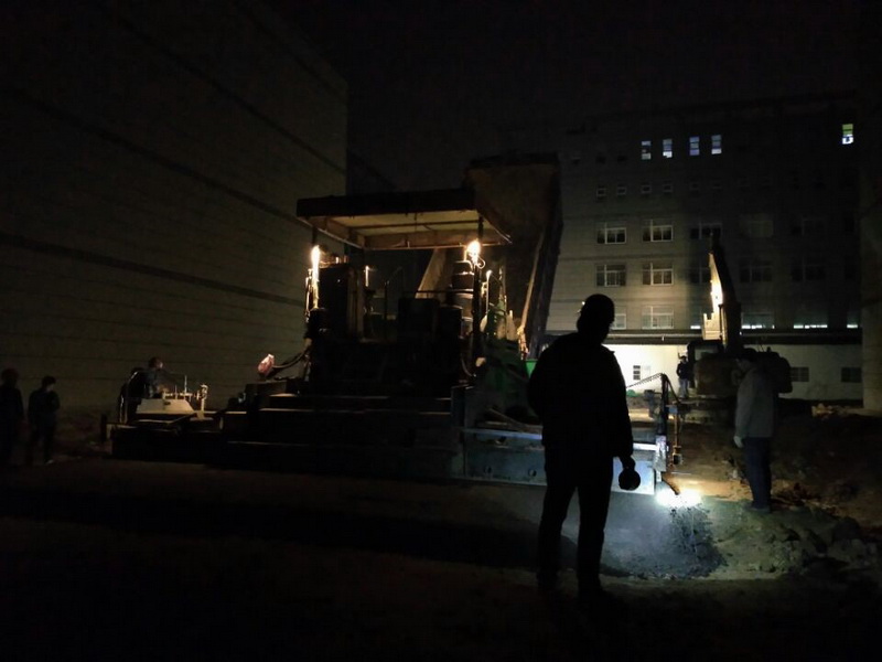 發(fā)藝廠房夜間加班攤鋪水穩(wěn)