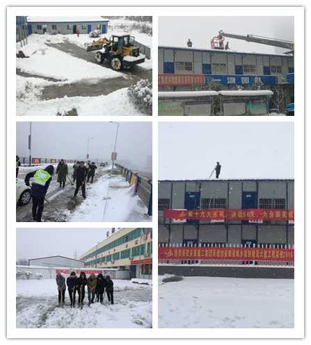 公司所屬各工管部、項(xiàng)目部按照事先準(zhǔn)備的雪天安全生產(chǎn)應(yīng)急預(yù)案,有條不紊開(kāi)展積雪清掃工作。所屬項(xiàng)目部主要負(fù)責(zé)人親自帶隊(duì)、分工負(fù)責(zé),調(diào)動(dòng)機(jī)械設(shè)備,對(duì)施工現(xiàn)場(chǎng)道路、項(xiàng)目部辦公區(qū)屋頂積雪等進(jìn)行清掃。大家積極踴躍,不畏嚴(yán)寒,揮舞著鐵鍬和笤帚,你鏟我掃,配合默契。經(jīng)過(guò)持續(xù)半天的奮斗,項(xiàng)目人員不僅將項(xiàng)目部積雪清掃干凈,還積極參與了施工路段及街道上的積雪清掃,極大的方便了過(guò)往車(chē)輛和行人,保障了交通順暢和群眾出行安全,贏得了人民群眾的普遍贊賞。