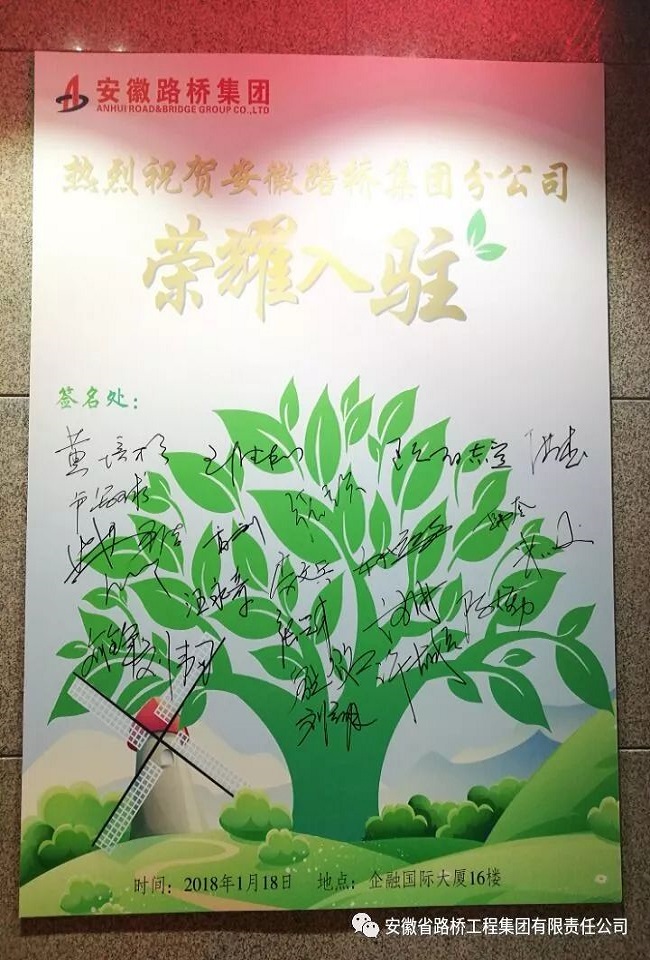2018年1月18日上午8時(shí)38分,在一片喜慶熱鬧的氣氛中,安徽路橋集團(tuán)分公司入駐儀式在企融國(guó)際16樓舉行。路橋集團(tuán)領(lǐng)導(dǎo)班子部分成員、各分公司領(lǐng)導(dǎo)班子等參加儀式。
