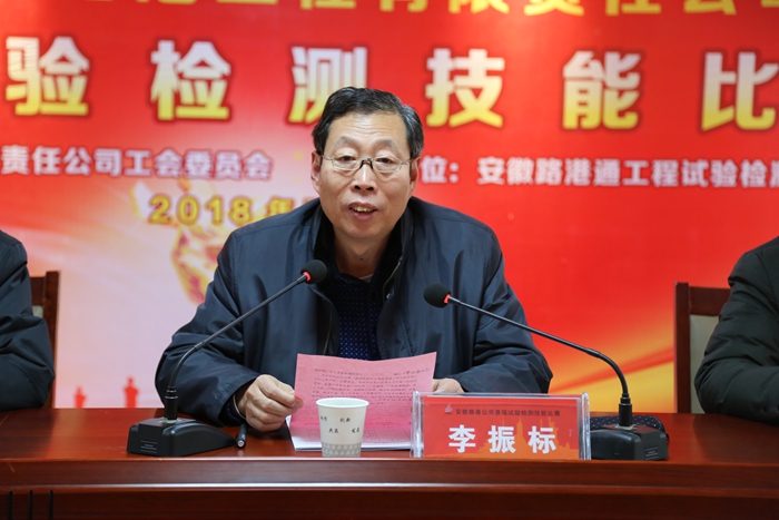 安徽路港公司董事長(zhǎng)、總經(jīng)理李振標(biāo)出席開(kāi)幕式并發(fā)表講話。他指出,此次技能比賽是廣大試驗(yàn)人員展現(xiàn)精神風(fēng)采和技能水平的一個(gè)公平競(jìng)技平臺(tái),是公司試驗(yàn)技術(shù)能力的全方位展現(xiàn),對(duì)加快推進(jìn)公司試驗(yàn)人員隊(duì)伍建設(shè)上臺(tái)階、全面促進(jìn)公司試驗(yàn)工作整體上水平起著重要作用。希望參賽選手嚴(yán)格遵守比賽規(guī)則,賽出風(fēng)格、賽出水平,以扎實(shí)的理論功底、良好的心理素質(zhì)和規(guī)范的操作技術(shù),充分展示安徽路港試驗(yàn)檢測(cè)人員的良好精神風(fēng)貌和精湛技術(shù)水平。