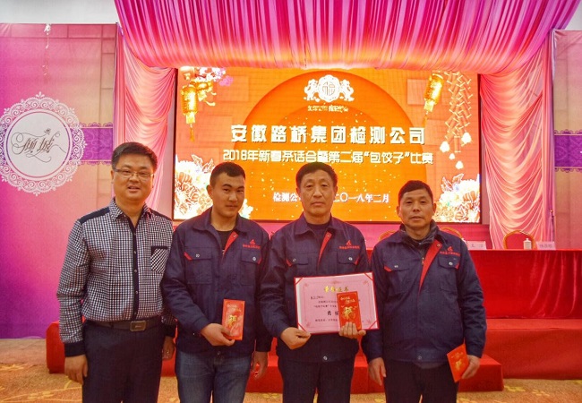 春回大地、萬象更新!農(nóng)歷正月初七,檢測公司2018年新春茶話會和第二屆“包餃子”比賽活動在合肥順利舉辦,檢測公司100余人歡聚一堂。安徽路橋集團領(lǐng)導(dǎo)盛明宏、歐陽志宜、王勝利、王潔、鄧?yán)?/FONT>,安徽路橋集團工會副主席陸在銀,檢測公司領(lǐng)導(dǎo)班子成員出席本次活動,活動由檢測公司工會主席、副總經(jīng)理佐群主持。