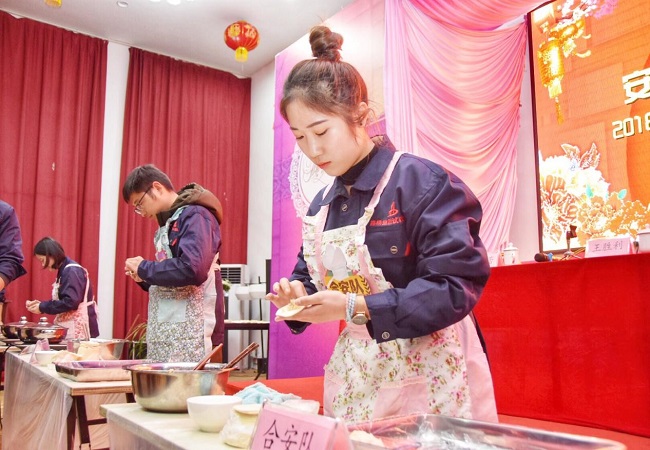 隨著主持人宣布比賽開始,參賽選手展開了激烈的角逐,選手們各顯其能,放肉餡、捏造型、擺盤,一整套動作完整連貫。你包餃子、我燒開水、她煮餃子,展現(xiàn)著各自的優(yōu)勢,一道道工序有條不紊,流露出選手們無比的專注與配合的默契。不一會兒,一盤盤大小勻稱、緊實飽滿、形狀美觀的餃子整齊地擺上臺面。經(jīng)過幾輪比賽,裁判組綜合評判后,獎項塵埃落定。由西藏昌都項目試驗室、新疆精河項目試驗室、新疆國防路項目試驗室組成的聯(lián)合2隊力壓群雄,斬獲團體獎,郭飛翔、秦悅、羅躍獲得個人賽的前三名。