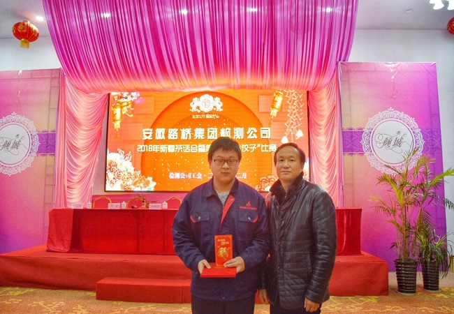 活動現(xiàn)場,安徽路橋集團黨委書記、董事長、總經(jīng)理盛明宏對檢測公司順利舉辦第二屆“包餃子”比賽活動表示祝賀!肯定了檢測公司2017年取得的成績,同時希望檢測公司2018年實現(xiàn)既定目標(biāo)。“成功沒有奇跡,成功只有軌跡”,希望檢測公司朝著“名副其實、譽滿江淮”的方向奮斗,2018年會更好!