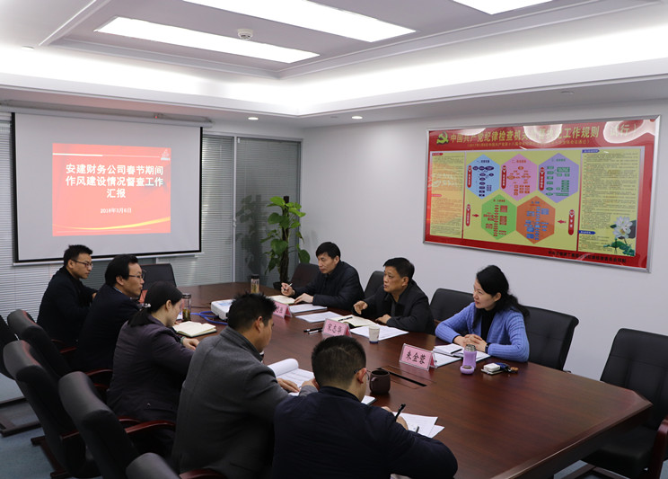 3月6日,集團公司黨委委員、紀委書記宋志華一行蒞臨安建財務(wù)督查公司春節(jié)期間作風(fēng)建設(shè)工作情況。集團公司人力資源部副主任朱金蓉,黨委工作部主管章志勝陪同。安建財務(wù)公司領(lǐng)導(dǎo)班子成員及黨群工作部、綜合事務(wù)部相關(guān)人員參加會議。