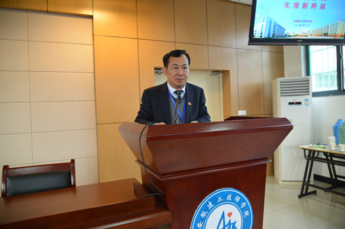 集團(tuán)公司工會(huì)主席徐曉光代表集團(tuán)工會(huì)向此次大會(huì)的召開(kāi)表示熱烈祝賀,他高度肯定了學(xué)院2017年工作和取得的“驕人業(yè)績(jī)”,特別是獲得安徽建工集團(tuán)先進(jìn)單位榮譽(yù)稱(chēng)號(hào),時(shí)隔12年獲得集團(tuán)頒發(fā)的最高榮譽(yù),獎(jiǎng)牌含金量高,榮譽(yù)來(lái)之不易,更是集團(tuán)公司對(duì)學(xué)院取得成績(jī)的高度肯定。他非常贊同張衛(wèi)東院長(zhǎng)作的工作報(bào)告,認(rèn)為報(bào)告質(zhì)量很高,內(nèi)容詳實(shí),主題鮮明,思路清晰,切實(shí)可行。他從校園面貌煥然一新、學(xué)院發(fā)展?jié)摿薮?、職工積極主動(dòng)作為談了對(duì)學(xué)院三個(gè)方面的全新認(rèn)識(shí);徐主席對(duì)學(xué)院、全體代表和廣大教職工提出四點(diǎn)希望:一是學(xué)院黨委要抓好教職工的學(xué)習(xí),特別是思想政治理論學(xué)習(xí)。用習(xí)近平新時(shí)代中國(guó)特色社會(huì)主義思想和黨的十九大精神武裝頭腦、指導(dǎo)實(shí)踐、推動(dòng)工作,扎實(shí)開(kāi)展“不忘初心、牢記使命”主題教育;二是把握機(jī)遇,加快發(fā)展。特別是在新校區(qū)建設(shè)上,要做到心往一處想、勁往一處使,用咬定青山不放松的精神向前看、向前走;三是全體代表要在學(xué)院改革與發(fā)展中起表率作用。積極參與民主管理、民主決策;引導(dǎo)廣大教職工正確處理好國(guó)家、集體、個(gè)人三者的關(guān)系,扎實(shí)工作。學(xué)院領(lǐng)導(dǎo)班子要樹(shù)立依靠廣大教職工辦學(xué)的思想,激發(fā)他們干事創(chuàng)業(yè)的激情,提高廣大教職工的幸福指數(shù);四是注重內(nèi)涵建設(shè),打造學(xué)院特色品牌。要牢牢把握國(guó)家、省市大力發(fā)展職教的政策,特別是近期要認(rèn)真學(xué)習(xí)貫徹《安徽省人民政府辦公廳關(guān)于深化產(chǎn)教融合的實(shí)施意見(jiàn)》皖政辦〔2018〕4號(hào)文件精神,深化產(chǎn)教融合,加強(qiáng)教師隊(duì)伍建設(shè),做到提質(zhì)增效,辦“家長(zhǎng)滿意、企業(yè)滿意、社會(huì)滿意”的一流技師學(xué)院,抓好各項(xiàng)工作落實(shí),奮力實(shí)現(xiàn)全年工作目標(biāo)。同時(shí),他還要求大家要認(rèn)真學(xué)習(xí)貫徹集團(tuán)公司一屆四次職代會(huì)暨2018年工作會(huì)議和學(xué)院本屆教職工代表大會(huì)的精神,加快推進(jìn)學(xué)院轉(zhuǎn)型升級(jí)。