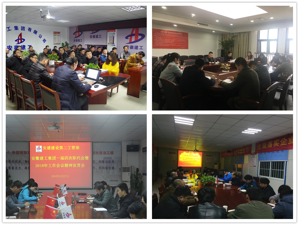 公司所屬各部門、工管部、辦事處和重點項目部把學(xué)習(xí)貫徹集團公司黨委書記、董事長趙時運所作的《深入學(xué)習(xí)貫徹黨的十九大精神 奮力譜寫新時代一流安徽建工新篇章》重要講話和集團公司總經(jīng)理劉家靜所作的《把握新時代 實現(xiàn)高質(zhì)量 再譜新篇章 為全面完成2018年各項目標(biāo)任務(wù)而努力奮斗》的工作報告,公司總經(jīng)理陳傳文所作的《邁入新時代 展現(xiàn)新作為 實現(xiàn)新突破 奮力譜寫安建建設(shè)轉(zhuǎn)型發(fā)展新篇章》工作報告和黨委書記王可武所作的《高舉旗幟 砥礪前行 奮力開創(chuàng)安建建設(shè)轉(zhuǎn)型發(fā)展新局面》講話作為當(dāng)前首要學(xué)習(xí)任務(wù),第一時間組織召開專題學(xué)習(xí)會,集中學(xué)習(xí)傳達(dá)兩級職代會會議精神。通過早班會、班后會、專題會、座談會、文化宣傳欄、QQ工作交流群、手機微信等宣傳形式,將兩級職代會精神傳遞到基層每個角落,把廣大干部職工的思想和行動統(tǒng)一到會議精神上來。