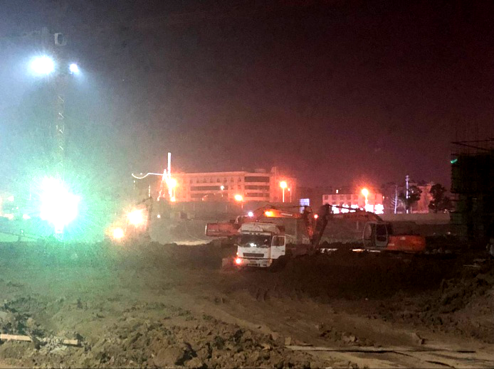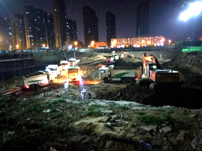 為確保安全文明生產(chǎn),針對(duì)項(xiàng)目施工現(xiàn)場(chǎng),全面開展安全巡查、排查工作,全力確?;咏邓?、邊坡支護(hù)、臨時(shí)用電、腳手架等重點(diǎn)部位無安全隱患。在施工現(xiàn)場(chǎng)配備足夠的照明設(shè)備以滿足挖機(jī)、渣土車、塔吊等機(jī)械設(shè)備夜間作業(yè),并設(shè)專職安全員執(zhí)勤。