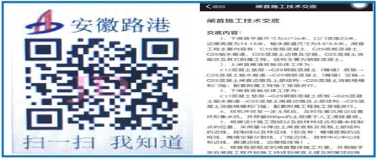 南坪船閘項(xiàng)目部二維碼標(biāo)識(shí)在現(xiàn)場顯要位置集中展示,取得了良好的效果。