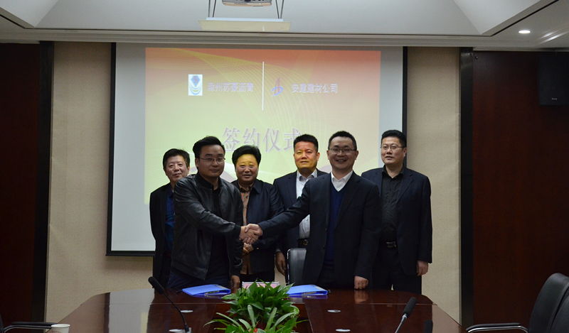 2018年4月8日下午,安徽建工建筑材料有限公司與滁州蘇豪瀝青有限公司合作協(xié)議在合肥簽署。安建建材公司董事長(zhǎng)、黨委書記、總經(jīng)理張鍵,滁州蘇豪瀝青有限公司董事長(zhǎng)桑少章、總經(jīng)理桑道峰出席了簽約儀式。安建建材公司總經(jīng)理助理李鑫,滁州蘇豪瀝青有限公司總經(jīng)理桑道峰代表雙方在協(xié)議上簽字。