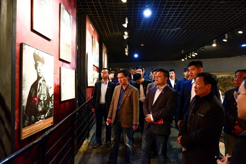 在淮海戰(zhàn)役紀(jì)念館內(nèi),大家對(duì)淮海戰(zhàn)役總體情況進(jìn)行了詳細(xì)了解。參觀過程中,根據(jù)戰(zhàn)役三個(gè)階段的決策部署和執(zhí)行情況,認(rèn)真分析了兵力、裝備、民心等方面資源情況,大家通過熱烈討論,一致認(rèn)為中國共產(chǎn)黨的統(tǒng)一領(lǐng)導(dǎo)和軍民團(tuán)結(jié)是淮海戰(zhàn)役的制勝法寶,撫今追昔,中國人民解放軍的英雄氣概仍歷歷在目,深切地感受到人民戰(zhàn)爭(zhēng)的偉大!在淮海戰(zhàn)役總前委群雕前,全體黨員深切緬懷劉伯承、陳毅、鄧小平、粟裕、譚震林5位革命先烈。在余志剛的帶領(lǐng)下,全體黨員舉起右拳,以堅(jiān)定有力的聲音重溫了入黨誓詞。錚錚誓言久久回蕩,表達(dá)了大家不忘初心、牢記使命的堅(jiān)定政治信念,為黨和國家事業(yè)矢志不渝、奮斗終身的決心。