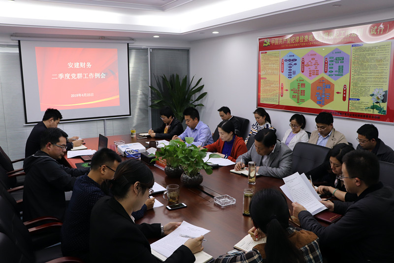 4月25日,安建財務(wù)公司黨總支召開二季度黨群工作例會,公司黨總支書記、副總經(jīng)理潘琳主持會議。副總經(jīng)理、紀檢委員于忠山,公司黨群部門相關(guān)人員,所屬各黨支部書記、支部委員及各工會小組長參加了會議。