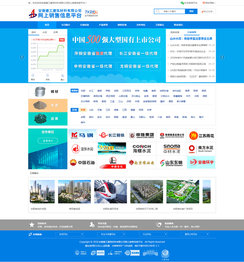 安建建材公司網(wǎng)上銷售信息平臺較為系統(tǒng)的向用戶介紹了安建建材的基本情況,三大主材(鋼材、水泥、瀝青)的可供優(yōu)勢資源情況、業(yè)務(wù)輻射區(qū)域情況、各區(qū)域負(fù)責(zé)對接人員情況以及工程業(yè)績等。用戶可以通過“資源條件”、“區(qū)域條件”、“板塊地圖”快速檢索到自己想采購的主材產(chǎn)品,并獲取相關(guān)購買信息,省時(shí)省力省心,大大優(yōu)化了資源供應(yīng)者與采購者之間的溝通渠道,拓寬了主材銷售路徑。