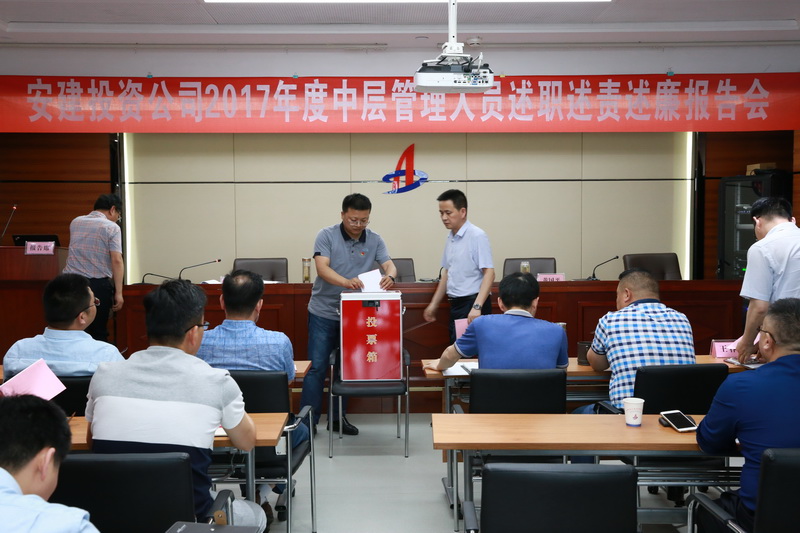 5月24日,安建投資公司召開2017年度中層管理人員述職述責(zé)述廉報(bào)告會(huì)。公司領(lǐng)導(dǎo)班子成員、所屬各項(xiàng)目公司主要負(fù)責(zé)人、考核對(duì)象、機(jī)關(guān)全體員工、職工代表等40余人參加會(huì)議。會(huì)議同時(shí)對(duì)公司中層后備干部人選進(jìn)行了推薦。