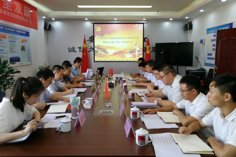為進一步整合PPP項目投資建設(shè)資源,增強組織活力和凝聚力,由投資主體安建投資公司與參建單位安徽安裝公司共同組建了阜陽安建建設(shè)管理有限公司聯(lián)合黨支部。6月14日,該聯(lián)合黨支部舉行揭牌儀式,安徽投資黨總支書記余志剛,安徽安裝公司黨委書記胡六中,安建投資公司副總經(jīng)理朱友良,安徽安裝公司紀委書記李寬旭共同為聯(lián)合支部揭牌并為支部贈書。