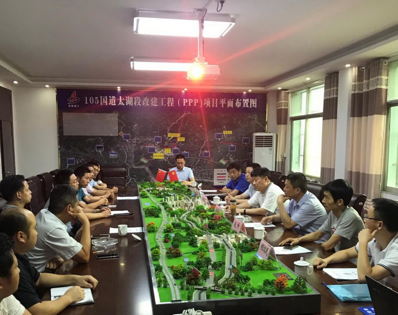 會上,許總一行通過觀看國道航拍視頻和聽取工作匯報的形式對105國道改建項目進行了深層次的了解。相關領導對太湖105國道改建工程PPP項目當前取得的工作成績予以高度認可,希望全體參建人員繼續(xù)努力,共同將集團在安慶地區(qū)的首個PPP項目打造成為安徽建工品牌工程。許克順強調:一要加強溝通,全力推進項目進度。項目公司要緊密配合政府方,加強溝通協作,推進項目征地拆遷進程,為工程全面實施和實現既定工程責任目標提供保障;二要優(yōu)化管理,著力防控投資風險。從優(yōu)化組織管理和施工管理方面入手,加快施工進度,爭取早日運營,確保投資收益;三要抓好黨建,持續(xù)抓好黨風廉政建設。要嚴明紀律、恪守規(guī)矩,時刻繃緊政治紀律和政治規(guī)矩這根弦,嚴格遵守黨章和黨內政治生活準則,不斷增強政治警覺性和政治鑒別力,扎實開展好“講忠誠、嚴紀律、立政德”專題警示教育活動,以魯煒案和徽商集團窩案等嚴重違紀行為為戒,引導黨員干部和全體職工牢記黨的宗旨,筑牢思想政治道德防線,提高拒腐防變的能力。
