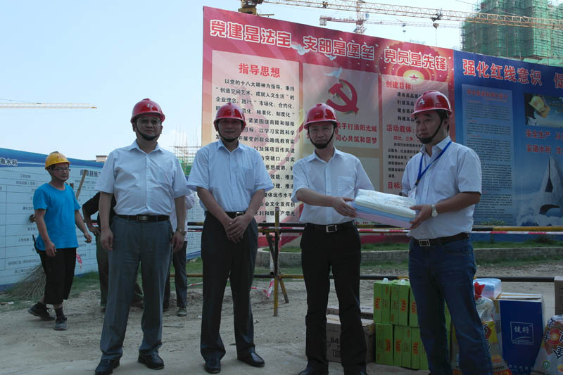 趙總一行首先視察了項目施工現(xiàn)場,為項目送去防暑降溫物品,并對夏季高溫堅守崗位的一線職工表示親切慰問。