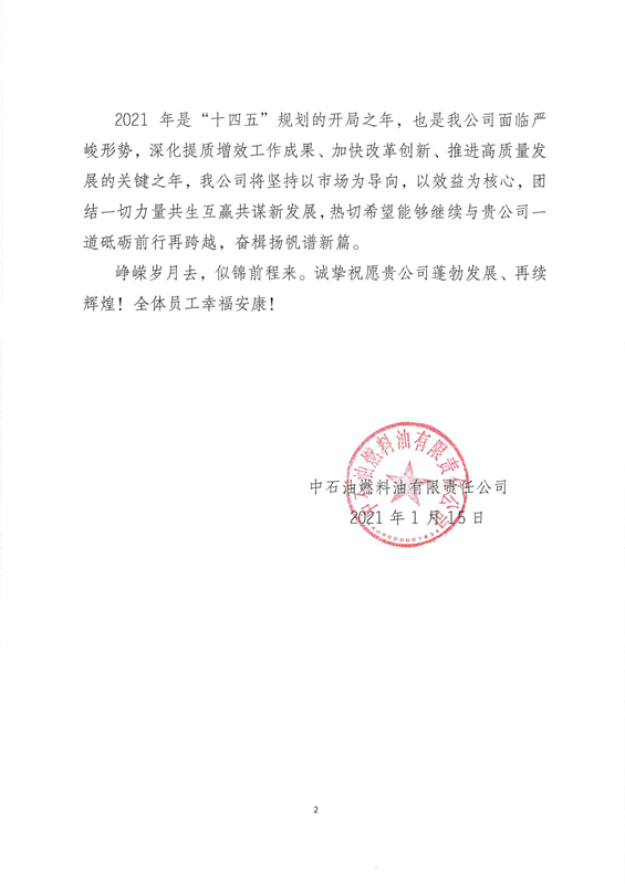 此次中石油燃料油公司給安建建材送來感謝信,標(biāo)志著雙方合作邁向了一個(gè)新的臺(tái)階。隨著雙方的合作升級(jí),相信在未來能夠繼續(xù)深入探討共贏新模式,開辟合作新征程。
