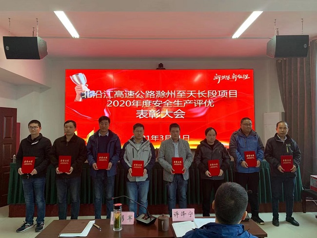 3月11日,在滁天高速項目2020年度安全生產(chǎn)評優(yōu)表彰大會上傳來喜訊,安徽路橋集團滁天高速04標獲得2020年度“安全生產(chǎn)先進集體”、“安全生產(chǎn)先進單位”的榮譽,項目安全部楊瑞波同志榮獲2020年度“安全生產(chǎn)先進個人”稱號。