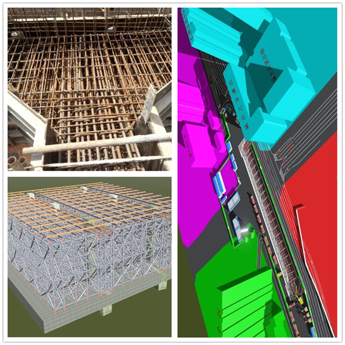 施工中,利用BIM技術(shù)進行關(guān)鍵施工工序流程的模擬,及車站流水段施工4D模擬,并將三維模型融入到圖紙會審、技術(shù)交底、方案模擬等日常工作中,確保施工順暢;通過BIM的可視化對車站主體影響范圍內(nèi)管線進行定位,征得設(shè)計院及業(yè)主同意對受影響的灌注樁進行錯位施工,保證施工進度;在高支模施工應(yīng)用,利用PKPM軟件進行高支模受力驗算,確定高支模支撐體系,同時進行施工前的模擬排版。